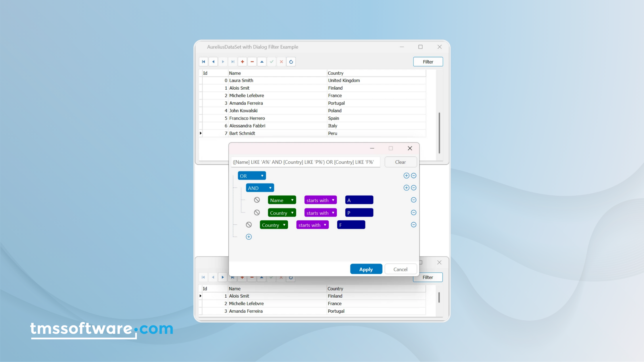 - Blog: Filtering Data in XData with TTMSFNCDataSetFilterDialog and Aurelius DataSet