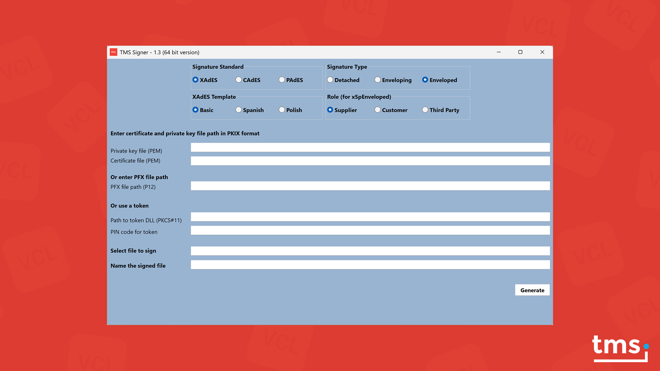 | Discover the TMS Signer Application, a freeware app to digitally sign XML invoices using PKCS#11 tokens or PKIX/PFX keys. Built on TMS Cryptography Pack 5.x, it supports XAdES signatures compliant with EU and national standards. Perfect for developers working with e-invoicing and XML security! |