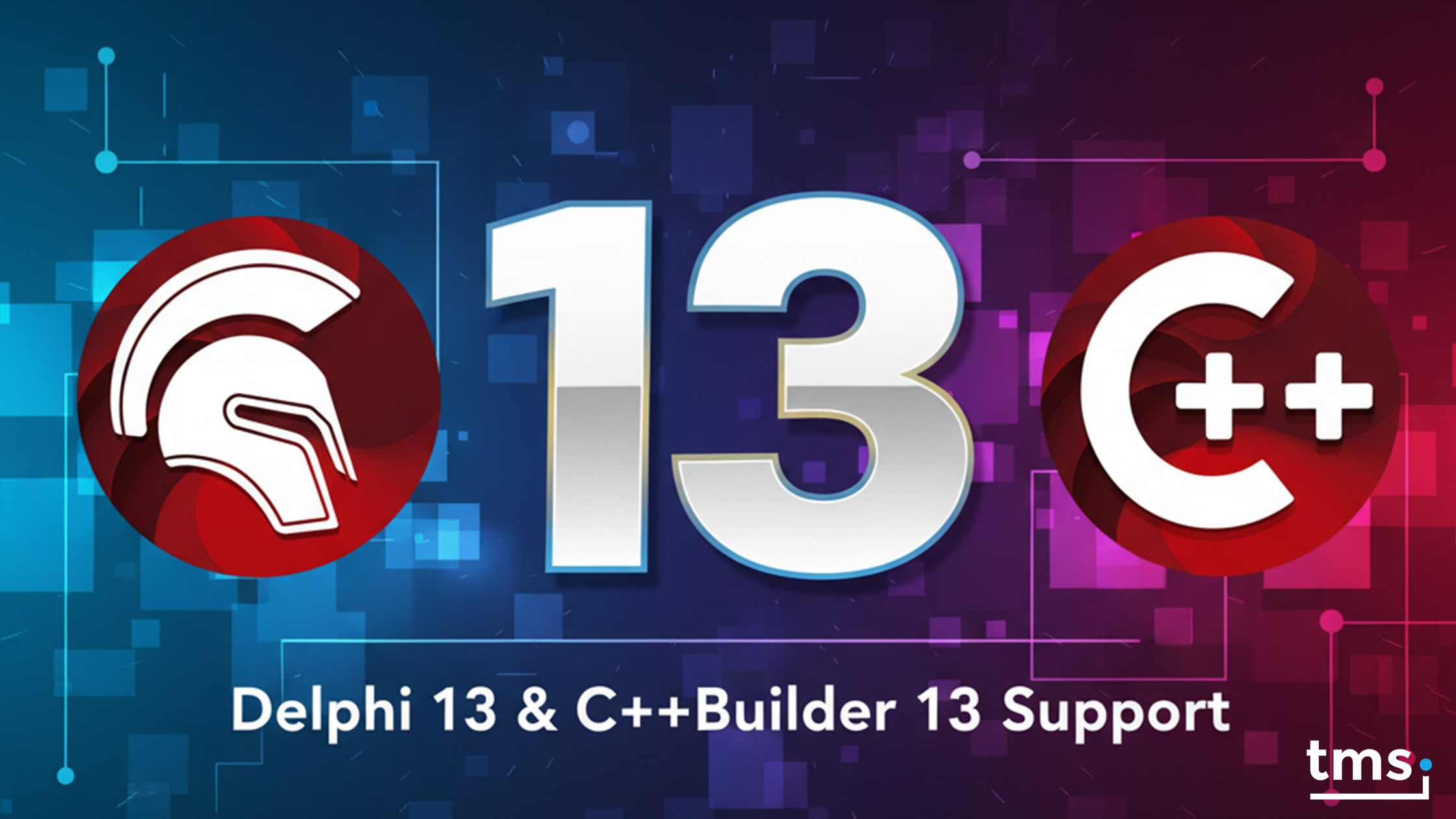 This week we’re excited to announce full compatibility for the following products: TMS VCL Chart, TMS Async, TMS Instrumentation Workshop, TMS iCL, TMS mCL, TMS WEB Core, TMS XData, TMS Logging, TMS Echo, TMS Business Core Library, TMS Sphinx, TMS Sparkle, TMS RemoteDB, TMS Aurelius, TMS Workflow Studio, TMS Diagram Studio, TMS Query Studio, TMS PassKit, GraphQL for Delphi, TMS VCL Plugin Framework, TMS VCL Security System, TMS Cryptography Pack, TMS MemInsight, TMS MQTT, TMS Analytics & Physics Pack, and TMS VCL Cloud Pack