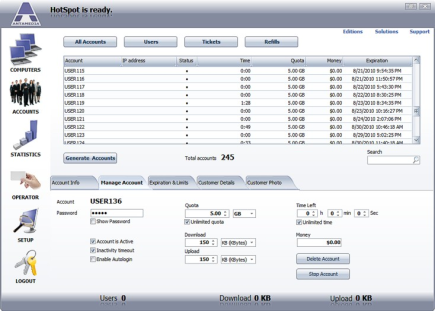 for WiFi Hotspot billing. Control time and bandwidth usage of wired and