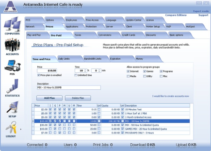 | Antamedia | Antamedia Internet Cafe software provides full billing and income control, locks unused computers, generates detailed reports and statistics and supports password protected employee accounts. Process payments quickly and efficiently and improve your business with various reports and statistics |
