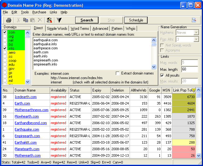 | Backslash | Mozzle Find the BEST domain names using this fast and powerful tool. Mozzle allows brainstorming using a built-in automatic thesaurus. The simple search is easy to use, yet still powerful. The advanced search uses word groups with individual settings for position, optional/mandatory status, and number of thesaurus alternatives. Also included is an advanced pattern search, Net Speak™, direct registration, printing, exporting, over 400 domains listed,free upgrades and more! |
