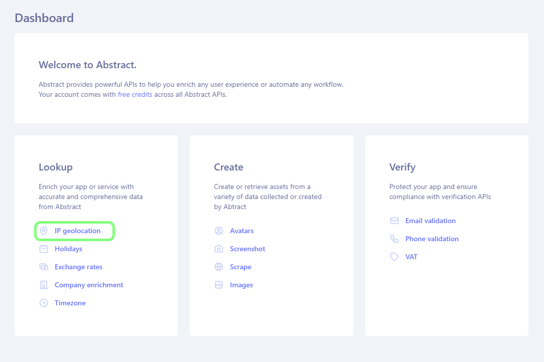 - Sign up or Login via the website: https://www.abstractapi.com/