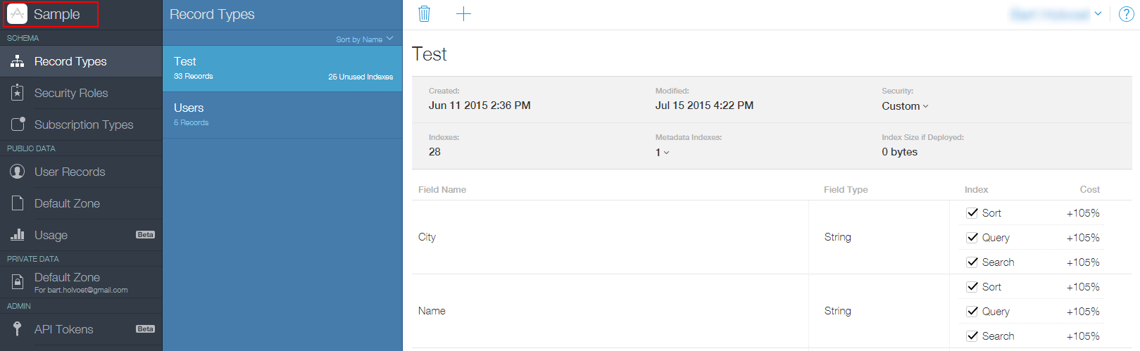 - Click on Record Types and create the desired database schema.