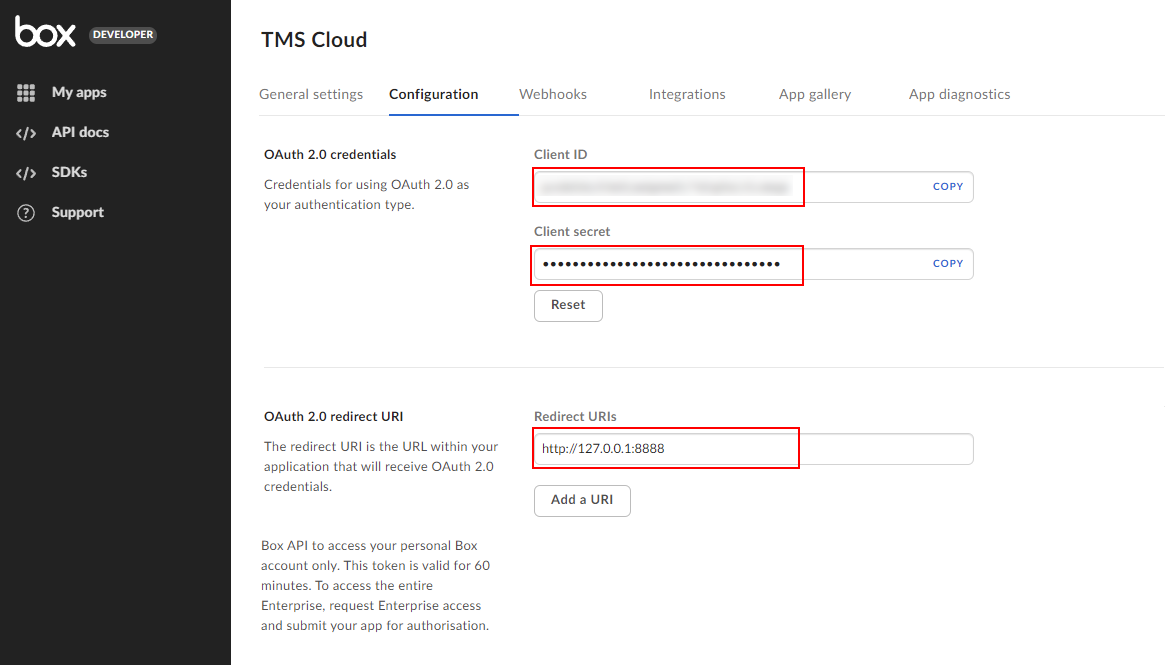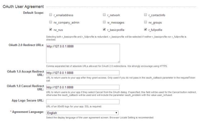 Please note that the field 'Oauth 2.0 Redirect URLs' is required for authentication.