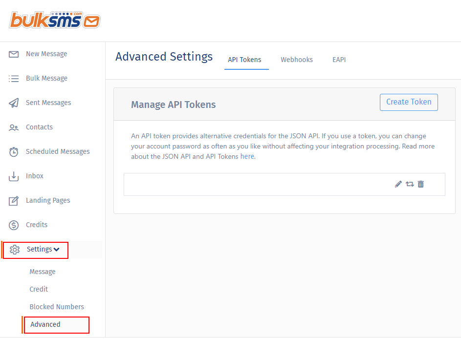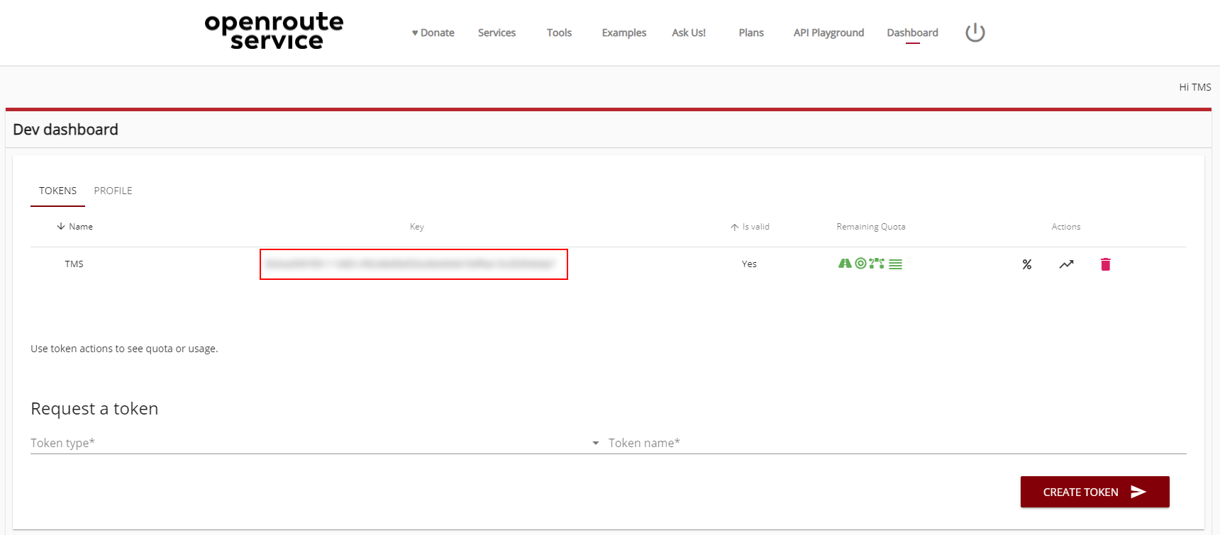 - When you select "Create Token" an Authentication token will be available.
