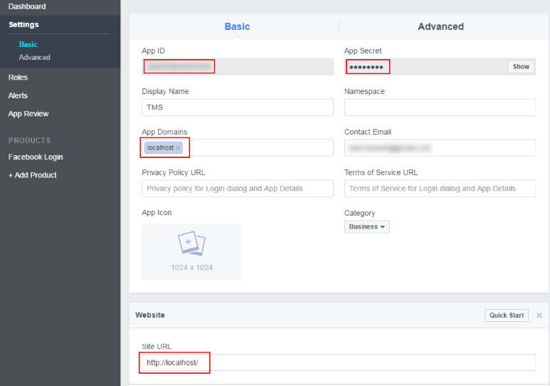 - You still need to enter the appropriate values in the 'App Domains' and 'Site URL' fields