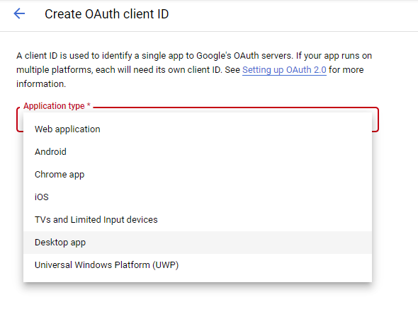 Note: Even when creating a desktop and/or mobile application, select "Web" to make the authentication function correctly - Enter a valid redirect URL.