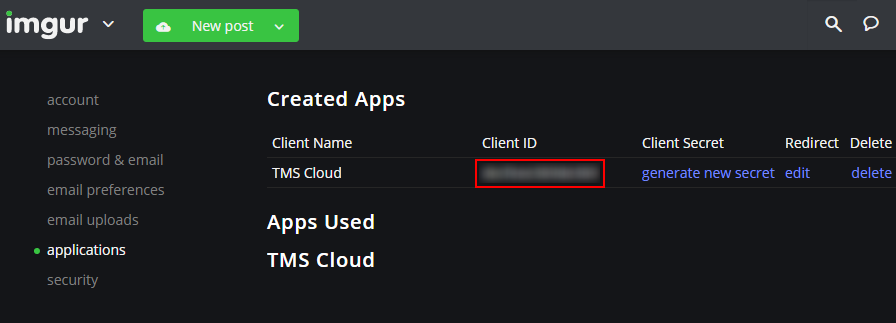 - Your Application Client ID and Secret are displayed on the App page