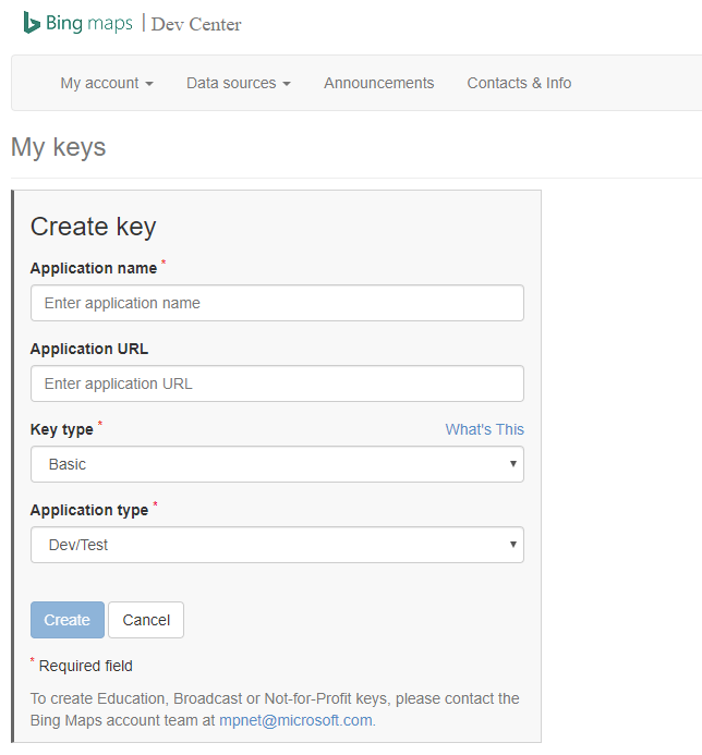 - Signup at Bing Maps
