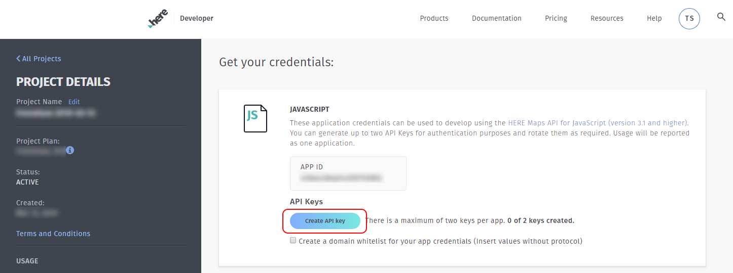 - Click on Create A Key to retrieve the API Key