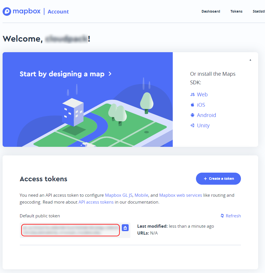 - Go to https://account.mapbox.com/ and login