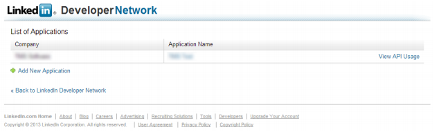 Then enter the application details on the following page to receive the API Key and Secret.