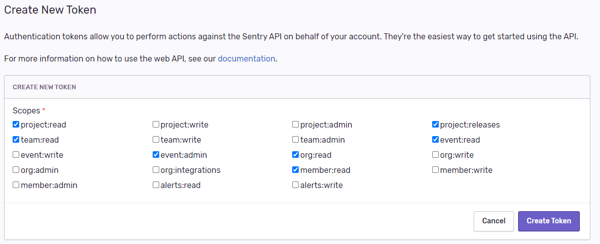 - Now you can login to the sentry website and create a token.