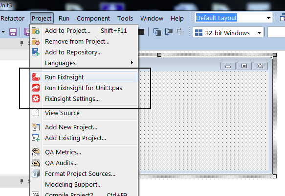 FixInsight seamlessly integrates into your Delphi IDE and outputs its messages in the familiar Messages window.You can integrate FixInsight (Pro version only) with your build process using the command-line tool and have several options that will let you run analysis automatically during the build process.