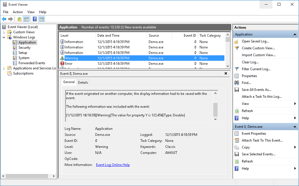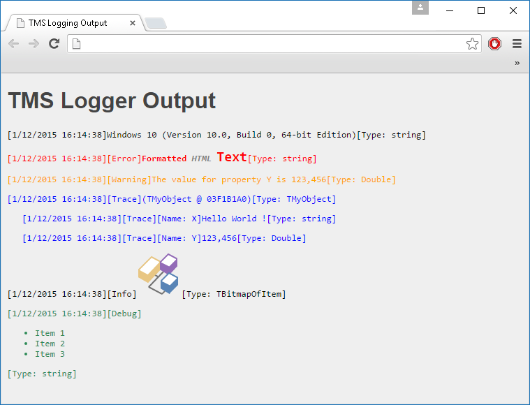 - Log to one or more output handlers such as the Console, HTML, Text file, CSV file, TCP/IP, Browser, Windows Event Log, ...