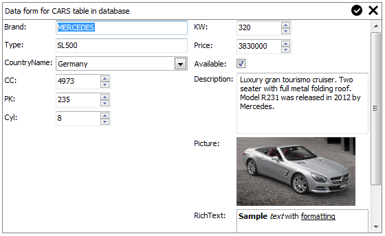 TMS TAdvDBFormLayout sample : Demo of TAdvDBFormbox and TAdvDBFormPanel Component