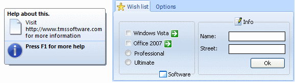 TAdvGroupBox / TAdvOfficeButtons / TAdvOfficeHintTAdvGroupBox / TAdvOfficeButtons / TAdvOfficeHint: Demo of Advanced GroupBox in combination with Advanced Office Buttons / Hint