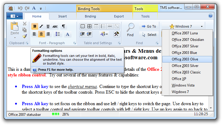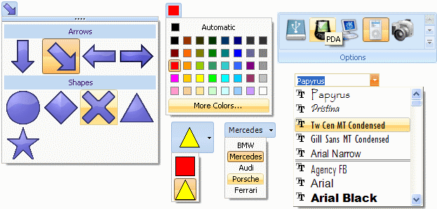 TAdvPolyList overview demo 2: Demo of Office 2010 application menu