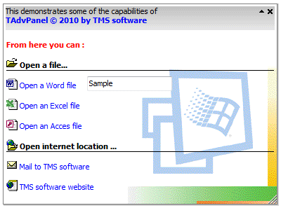 TAdvPanelTAdvPanel sample: Demo of Advanced Panel Component