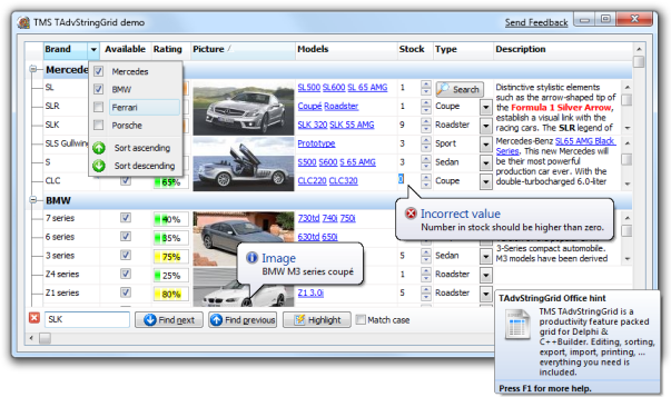 TAdvListviewTAdvListview sample: Demo of Advanced Listview Component