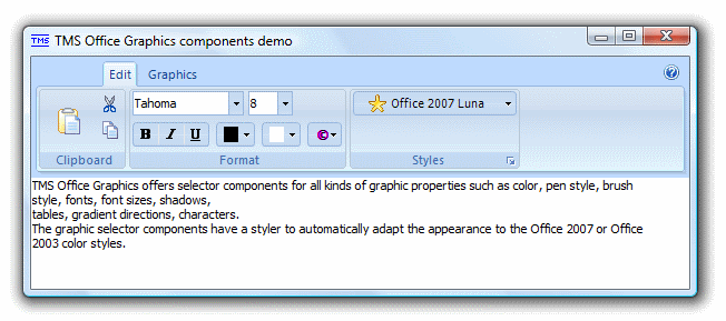 TAdvOfficeGraphicsTAdvOfficeGraphics sample: Demo of Advanced Office Graphics Component