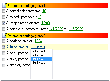 TParamControlsTParamControls sample: Demo of Parameter Controls Component
