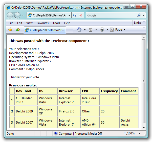 TWebPostTWebPost sample: Demo of Web Post Component