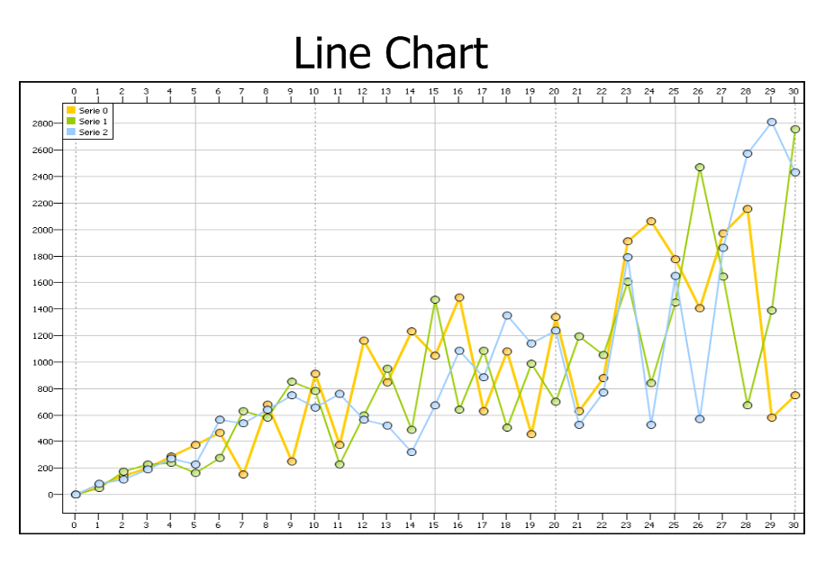 - Y-axis with auto ranging, minor & major value indication along Y-axis, multiple Y-axis values for different series supported