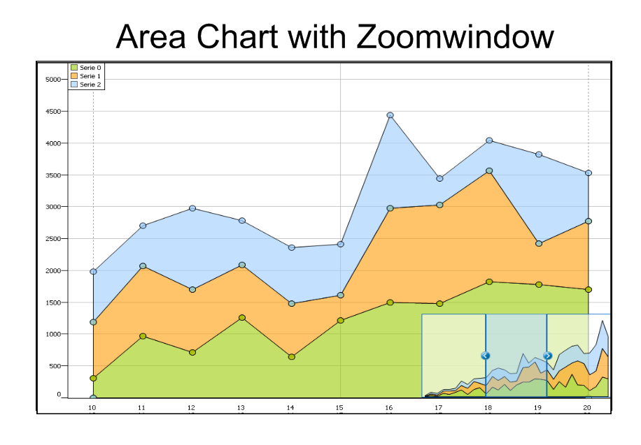 - Wide range of chart types: Line, Bar, Area, Pie, Spider, Donut, Band, Stacked Bars, Stacked Area, OHLC, CandleStick, Histogram, Bubble, Error, Digital Line, Funnel ...