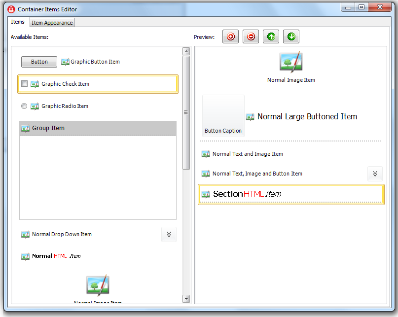 - Built-in Text, Image, Expandable, DropDown, Button items and many more...