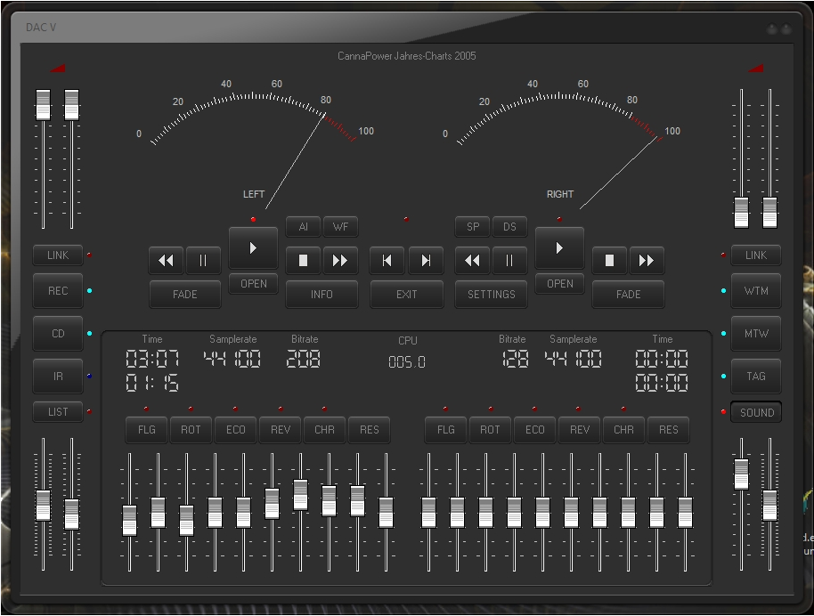 | Schattis | DigitalAudioCenter : the combination of a CD player, WMA, MP3, WAV, OGG player and audio recorder. DigitalAudioCenter has an integrated spectrum analyzer, equalize and playlist capability. Through DigitalAudioCenter you can also listen to internet radio |