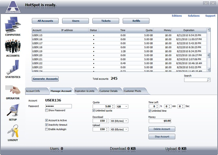 | Antamedia | Antamedia Internet Cafe software provides full billing and income control, locks unused computers, generates detailed reports and statistics and supports password protected employee accounts. Process payments quickly and efficiently and improve your business with various reports and statistics |