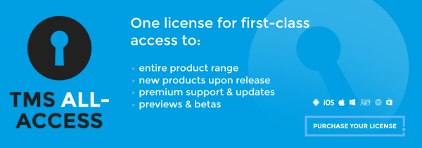 Excited about all the hot technology we offer for Delphi & C++Builder developers, get your VIP seat with TMS ALL-ACCESS, our no-nonsense subscription to our entire product offerings, priority support and access to betas (such as the upcoming TMS WEB Core for Visual Studio Code!