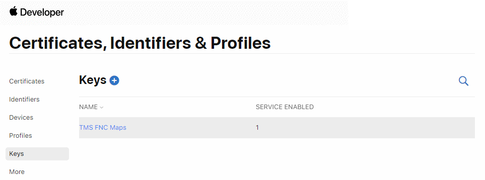 - Go to "Keys" and create a new Key for MapKit