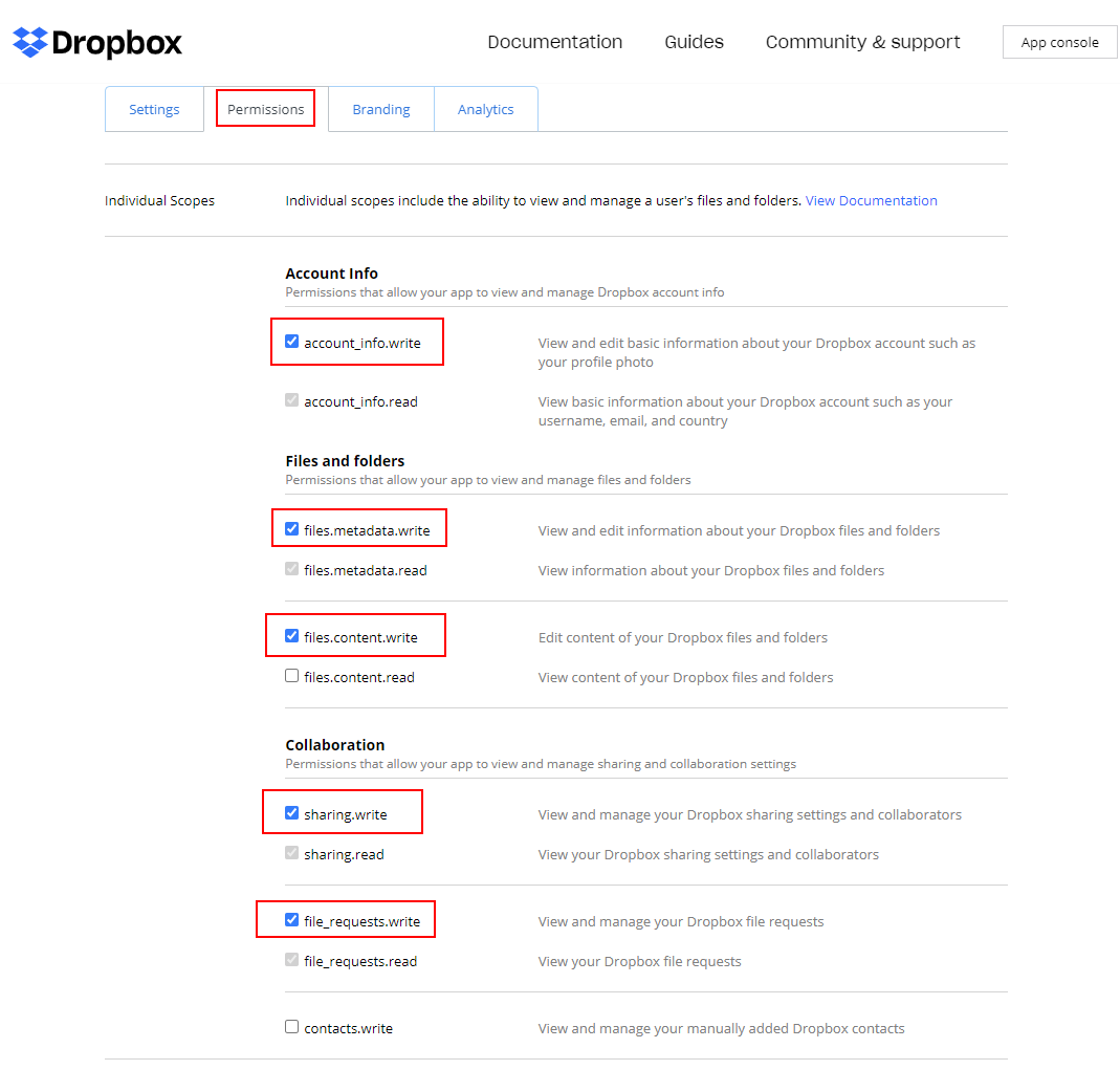 Now select the "Permissions" tab and select the required checkboxes.