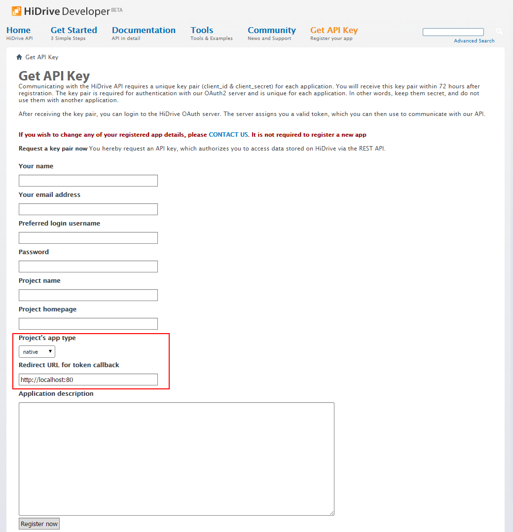 - Go to HiDrive developer site: https://dev.strato.com/hidrive/