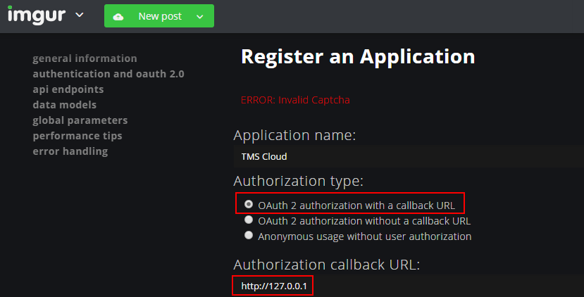 Please note that the field 'Oauth 2.0 Redirect URLs' is required for authentication.