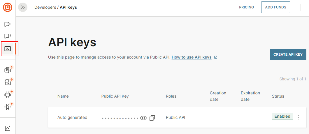 - Click on Settings > API Keys