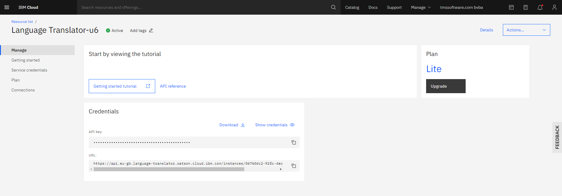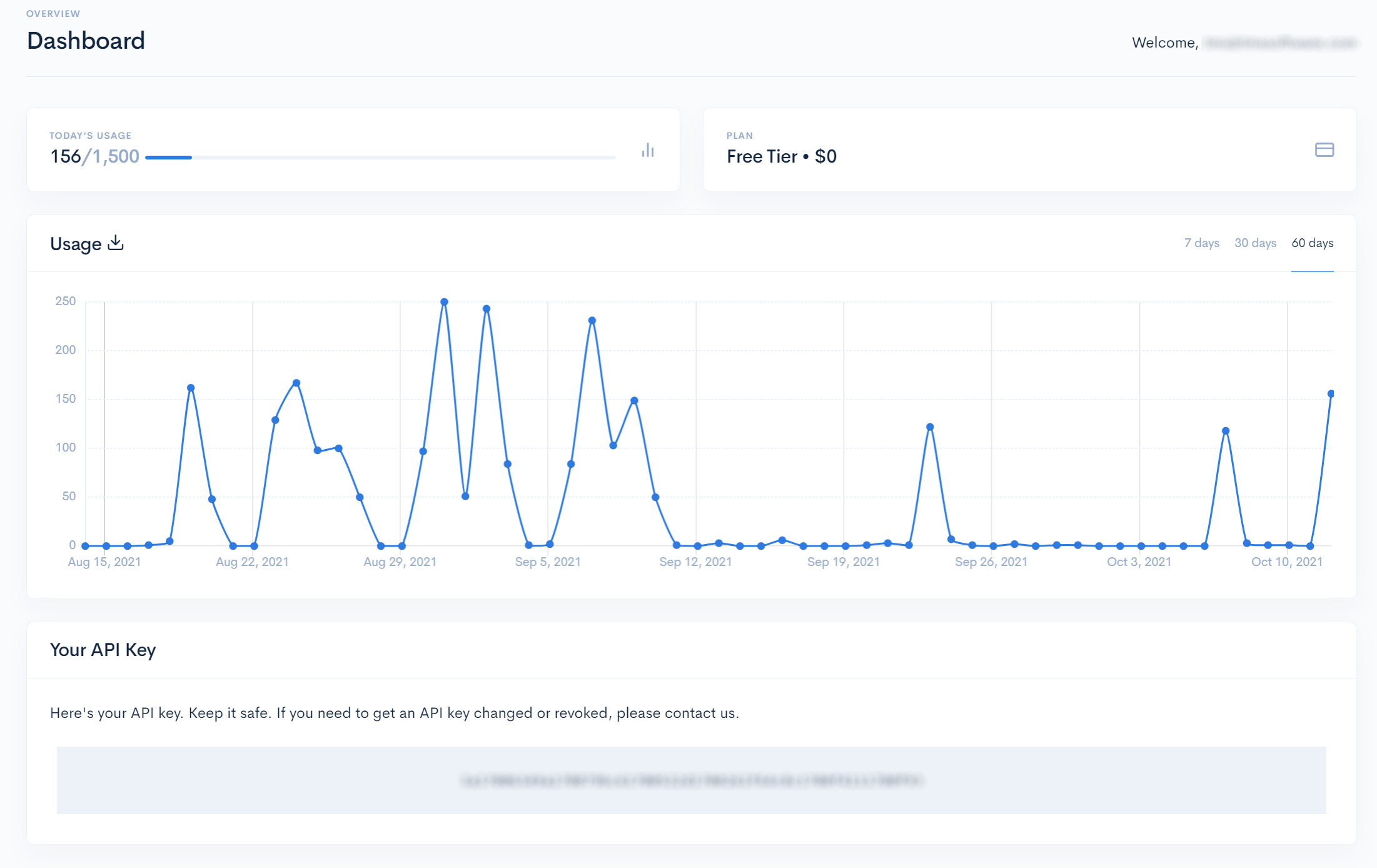 - The API Key is displayed