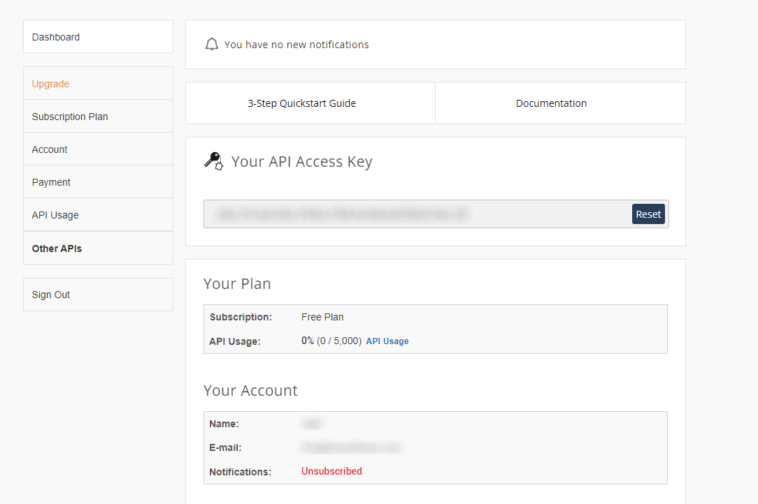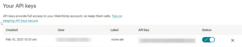 - The API key can found on the 'API Access' tab.