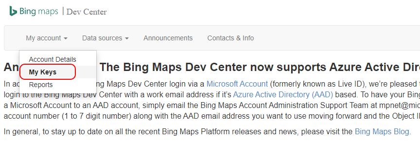 - Signup at Bing Maps