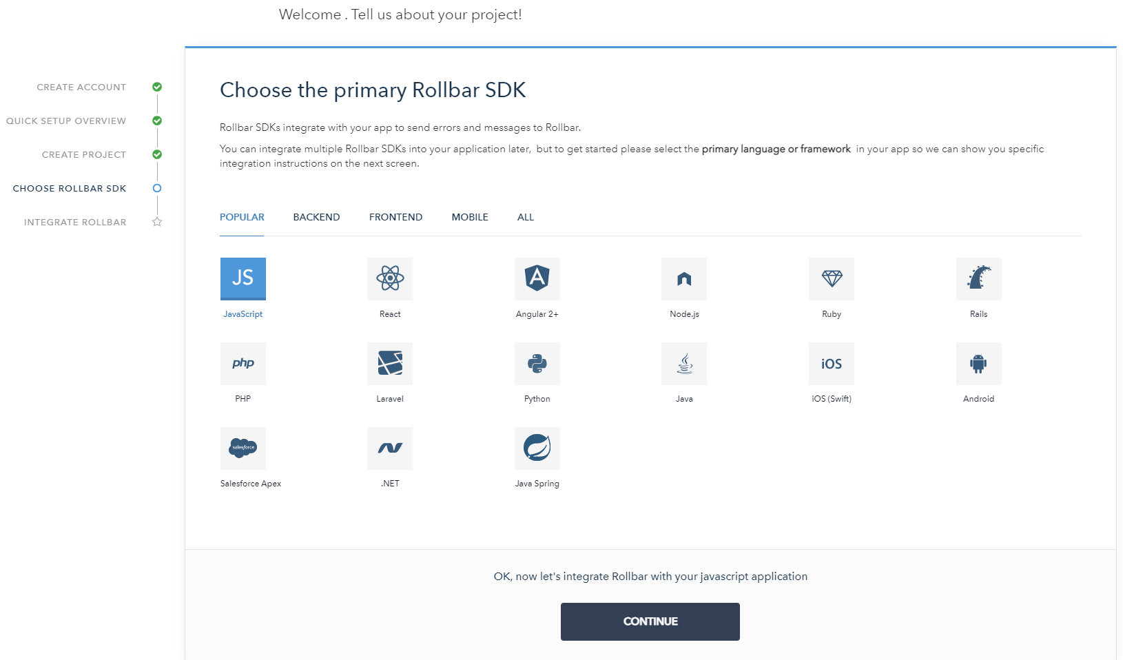 - Go to https://rollbar.com/signup/ and create your account.