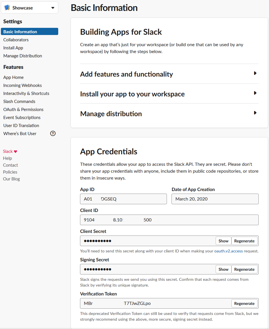 - Your Application Client ID and Secret are displayed on the App page