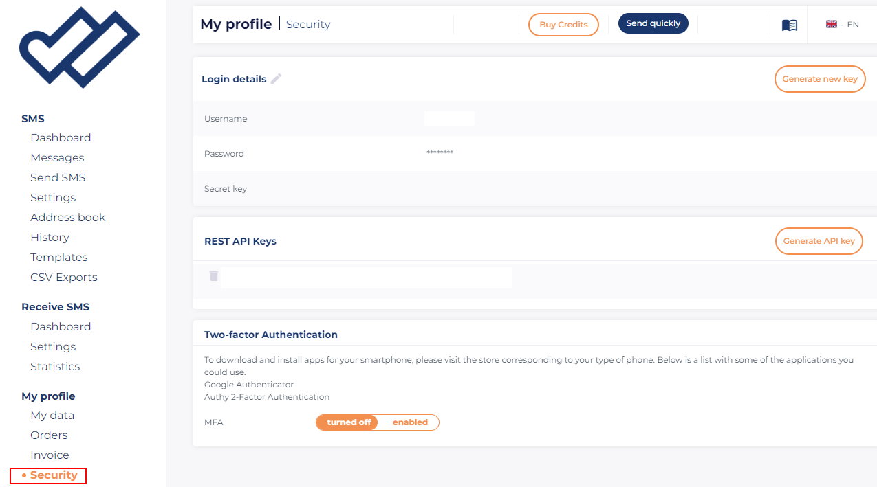 - From the top left menu, select "My account">"My Keys"