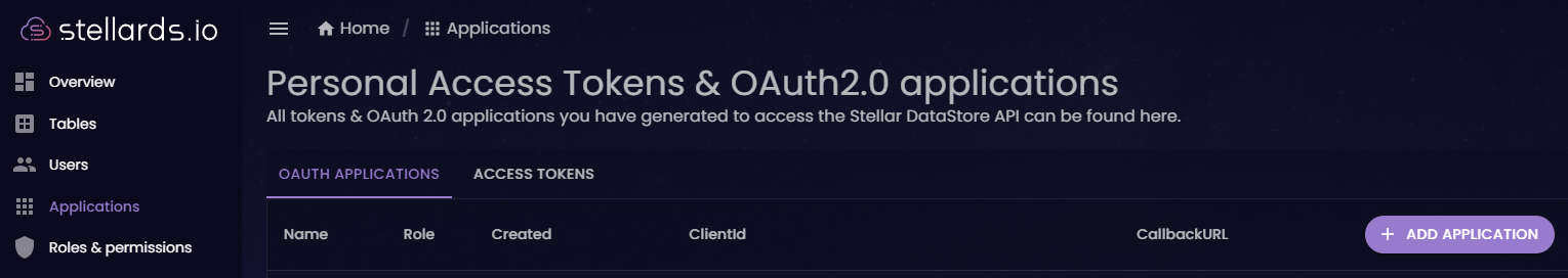 - Select the "OAUTH APPLICATIONS" tab and add a new application