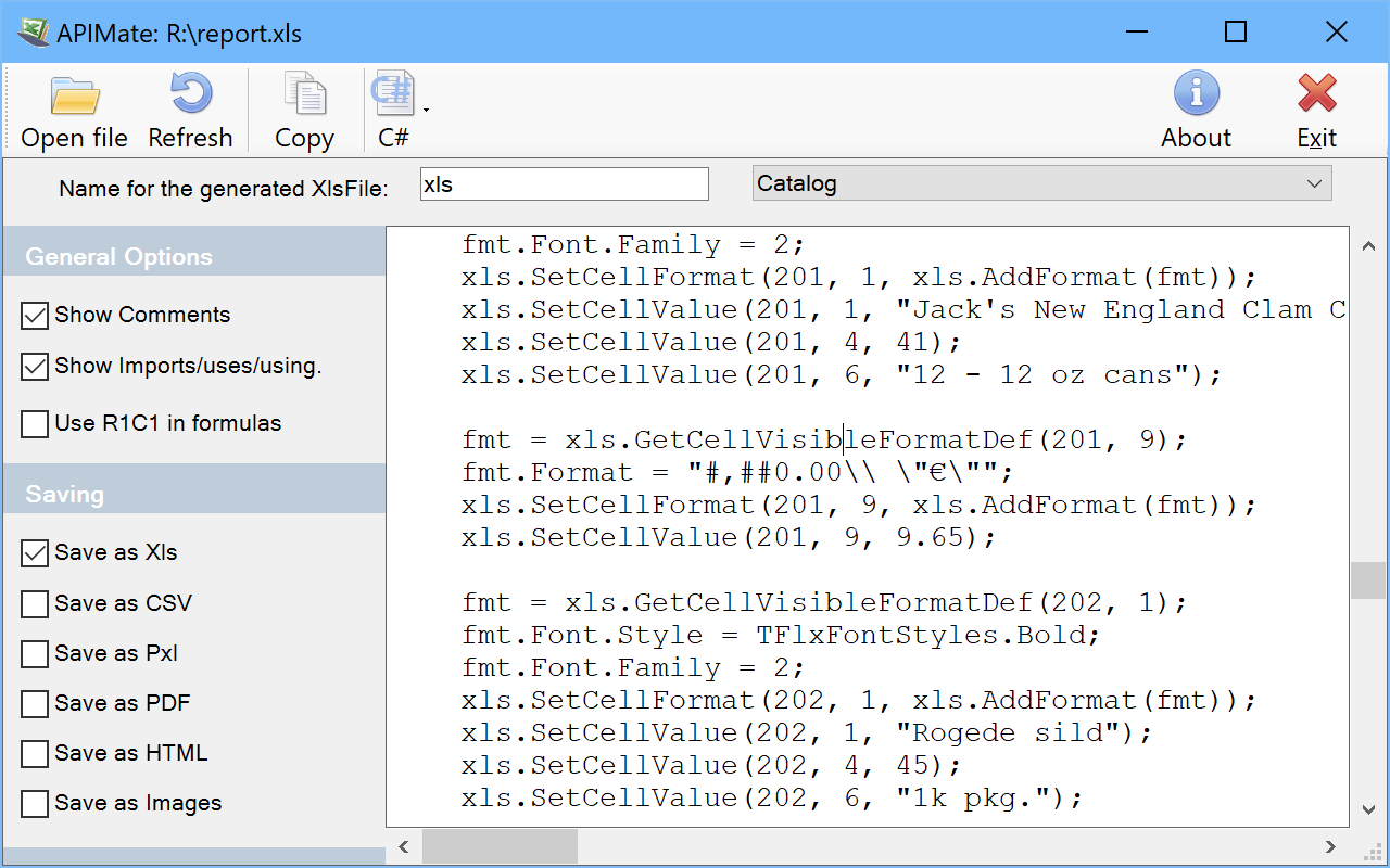 - ApiMate tool for automatically showing needed Delphi/C++ code for generating specific .XLS/.XLSX file cells with Flexcel