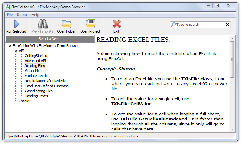 - FlexCel for VCL / FireMonkey is a suite of Delphi components allowing to manipulate Excel files. It includes an extensive API allowing to natively read/write Excel files. If you need to read or create complex spreadsheets, on Windows or macOS on machines without Excel installed, Flexcel can do the job.