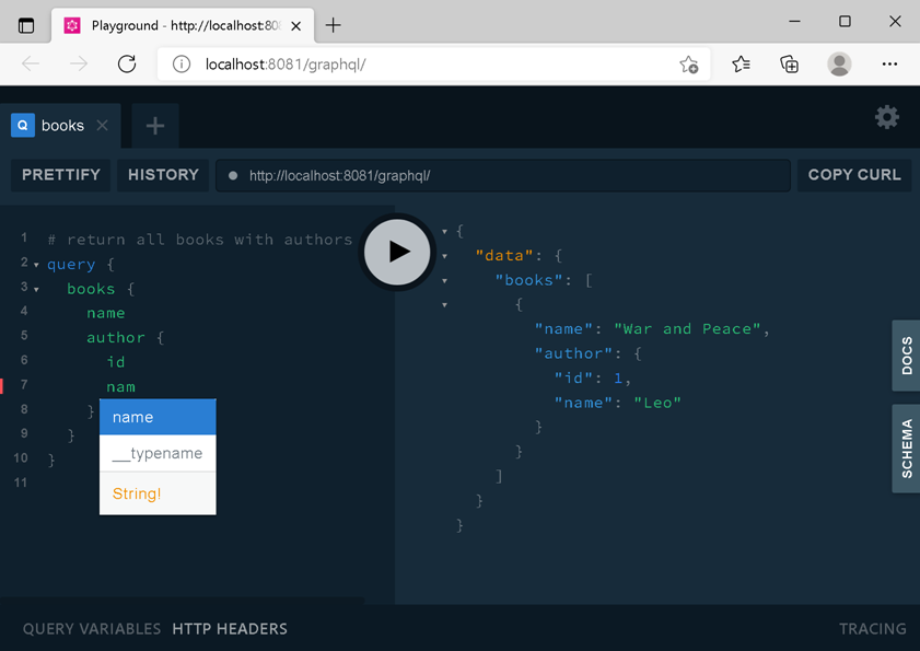 - Execute queries and debug your GraphQL server from web easily by enabling GraphQL Playground;