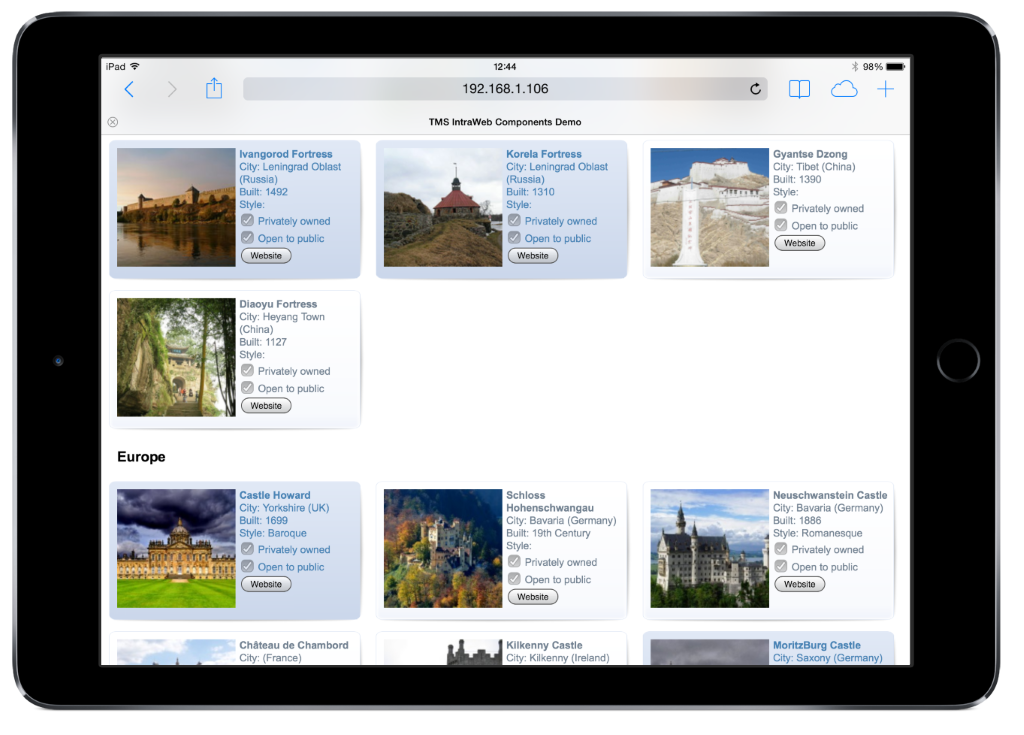 • TTIWDBAdvWebGrid, TTIWDBAdvDetailWebGrid: data-aware grid control